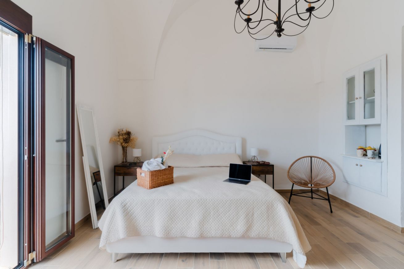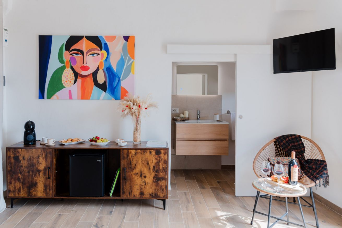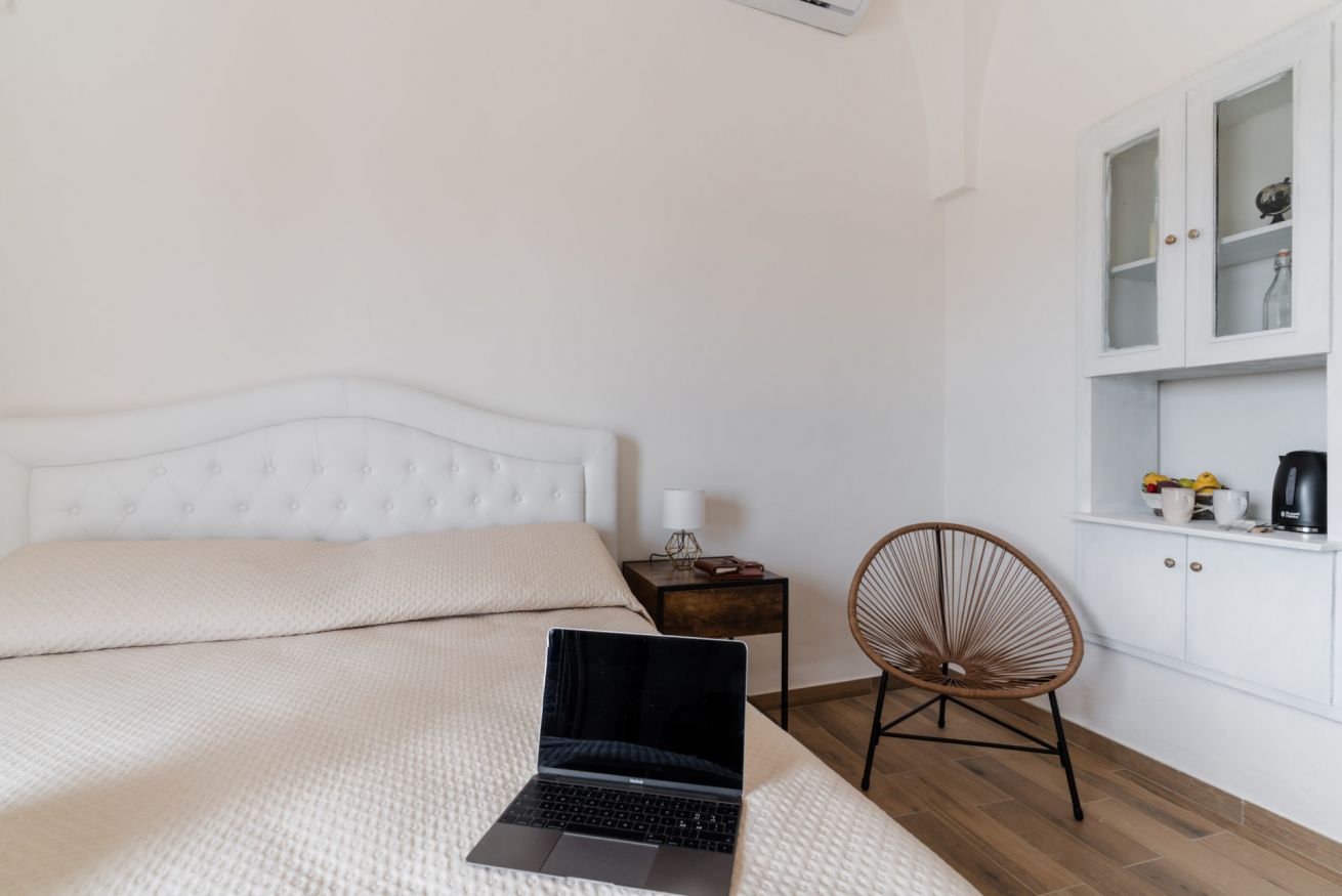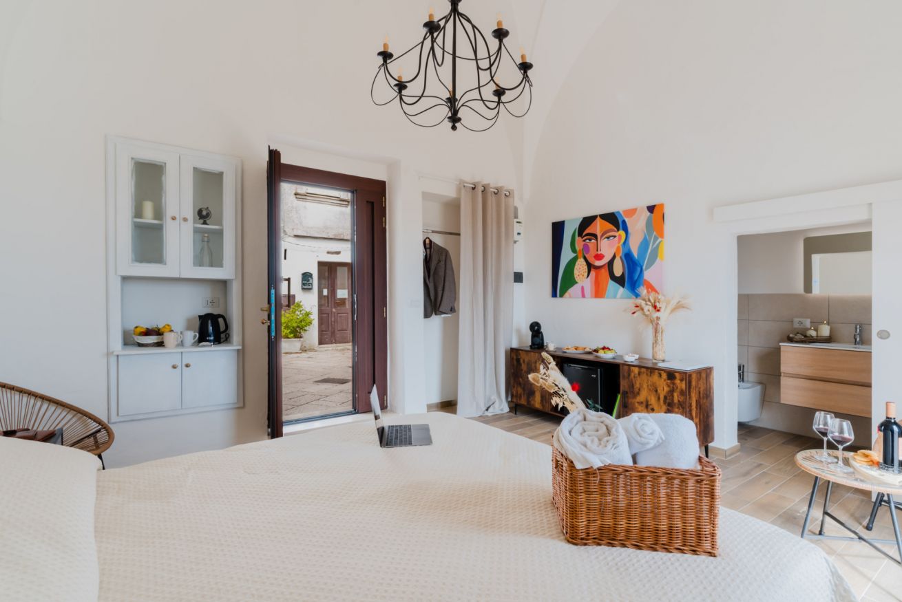 Splendida suite ristrutturata con vista panoramica, perfetta per una fuga romantica o una vacanza rilassante. La nostra suite offre: un letto matrimoniale, un bagno completo con box doccia, un angolo colazione con macchinetta del caffè, bollitore e mini frigo. Un piccolo balcone offre una vista mozzafiato sul paesaggio salentino.